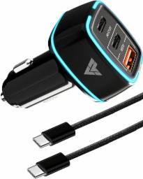 DR VAKU® 65W Car Charger Triple Port Output Fast Charging Type C PD 45w + 20w + 18w QC 3.0 for iPhone 15/14/13 All Series & Android Phones with 1 Meter Nylon Braided Type C Data Cable (Charger+Cable)