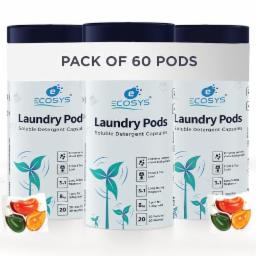 Ecosys 3-in-1 Dissolvable Magic Laundry Pods for 60 washes: Bio Enzymes Infused, Tough Stain Removal with Floral Aroma,1 Pod = 1 Wash for 5-7kg (Pack of 60)