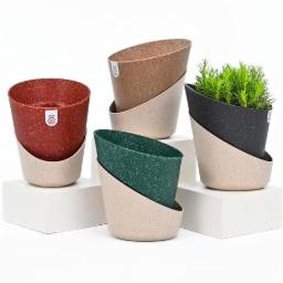 Eha Earth Friendly EcoBloom Self Watering Pots for Plants | 7 Inch, Pack of 4 |Bamboo Based and UV Protected Planters | Pots for Indoor Plants | for Home Decor, Outdoor, Balcony & Garden | Multi-Dark