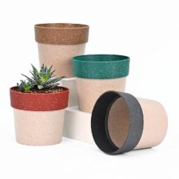 Eha Earth Friendly Ecopod Small Pots for Plant | 4 Inch, Pack of 4 | Table Top Planters | Bamboo Based and UV Protected | Pots for Indoor Plants for Home Decor, Outdoor, Balcony & Garden | Multi-Dark