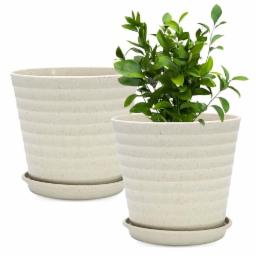 Eha Set of 2 Earth-Friendly Linea 7.5" Pots for Plants | Bamboo Based Plant Pots | UV Protected | Flower Pot for Indoor, Home Decor, Outdoor, Balcony & Garden | Sand Castle