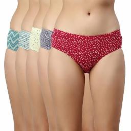 Enamor Stretchable Cotton Hipster Panties for Women Pack of 5, Full Coverage Grip Fit with Antimicrobial & Stain Release Technology-CR17-Assorted-Colors and Prints May Vary (CR17_Multicolorprint5_XL)