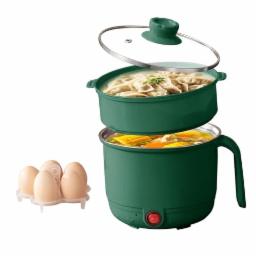 Estervig Multipurpose Electric Cooker 1.5L with Steamer & Egg Tray - Inner Steel Multi-Cooking Pot Non-Stick Kettle for Travel Automatic Mini Hot Pot (Green) (Cooking Pot+Steamer+Egg Tray)