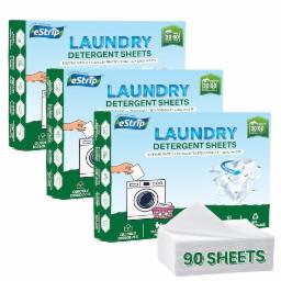 eStrip Laundry Detergent Sheets – 90 Sheets for 180 Washes | Plant-Based, Biodegradable, Eco-Friendly & Non-Toxic | For Top & Front Load Machines | 1 Sheet = 1 Wash (5–7kg) | Removes Tough Stains
