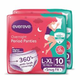 Evereve Period Panty For Girls & Women, (L-XL), 2x10 Pcs, 360 Degree Coverage, 0% Leaks, High Absorbency For Heavy Flow, Maternity Delivery Pads, Postpartum & Overnight Protection, Disposable Panty