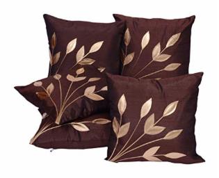 FabLooms Poly Silk Leaf Design Cushion Covers Set of 5 pcs (12 X 12 INCH, Brown)