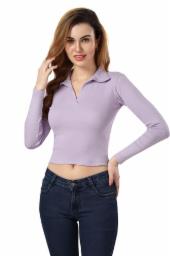 Get Fabme Women's Full Sleeves, Collar Rib Top - Lavender worth Rs.999 @ Rs.299 only.