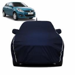 Fabtec Waterproof Car Body Cover for Maruti Dzire (2012-2016) with Mirror and Antenna Pocket, Triple Stitched and Soft Cotton Lining (Metallic Blue with White Piping)