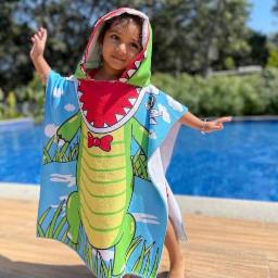 Famyo Crocodile Poncho Towel for Kids | Hooded Bath Towels | 60 x 60cm Toddler Pool Towel for Boys & Girls, 1-7 Years | Cute & Cozy Bathrobe Alternative