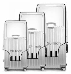 Fancy Walas Combo of 3 Trolley Bag Covers – Zippered Clear PVC Suitcase Protectors for 20", 24" & 28" Luggage – Waterproof & Dustproof Travel Covers (Black, 3-in-1 Set)