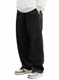 Fashion Booms Men's Trousers Loose Fit Casual Wear Soft Baggy Pants with Pockets | All Season Stylish Wide Leg Bottoms for Men | Comfortable Daily Use Cord Pants | Black (Large)