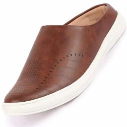 FAUSTO FST 1335 BROWN-42 Men's Brown Back Open Stylish Slip On Shoes (8 UK)