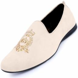 FAUSTO Men FST_FOSMC-2021_CREAM-42 Cream Embroidered Slip-On Loafers | Royal Ethnic Party Shoes |Ethnic Juttis and Mojaris for for Wedding Cushioned Insole (UK 8)