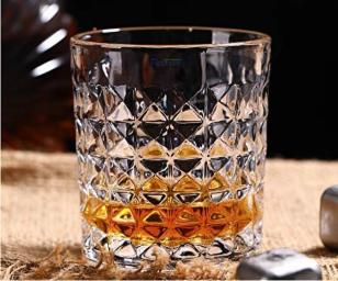 FINSTER Glass Crystal Cut Diamond Whiskey Glasses Set of 2-320ml, Transparent Bar Glass for Drinking Bourbon, Whisky, Scotch (Great Gift Idea for Whiskey Lover)