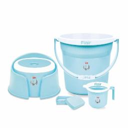 FLAIR Estella 4-Piece Bathroom Set – Includes 19L Bucket, 1.5L Mug, 9-Inch Bath Stool & Soap Case | BPA-Free Virgin Plastic | Durable, Hygienic, Compact | Ideal for Home & Bathroom Use | Blue