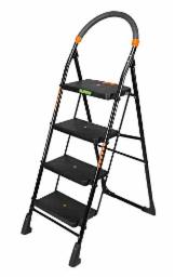 FLIPZON Premium Heavy Foldable Cameo 4 Steps Ladder with Wide Steps & Anti-Skid Shoes (Make in India) - Iron Body, Plastic Steps - Black