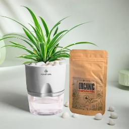 FlowerAura Air Purify Live Indoor Spider Plant In White Self Watering Pot With Manure For Living Room, Balcony, Home/Office Decor | Premium Gifting | Improving Air Quality | Reducing Stress