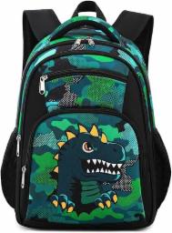 Frantic Waterproof Polyester 26 L 3 Compartment School Backpack With Pencil/Staionery Pouch School Bag Class 1 to 8 Daypack Picnic Bag For School Going Boys & Girls(RR_4Zipper_Black_Dianasour_24_B)