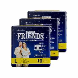Friends Overnight Adult Diapers Tape Style - 30 Count (Large) with odour lock and Anti-Bacterial Absorbent Core- Waist Size 29.53-57.09 Inch ; 75-145 Cm