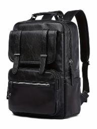 FUR JADEN Vegan Leather Stylish 15.6 Inch Laptop Backpack Travel Weekender Bag For Men Women (Black)