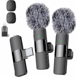GADGETSWEAR K9 Furry Dual Wireless Lavalier Microphone for Android iPhone | Collar Mic with Type-C, Lightning, USB Noise Cancelling Fur, Vlog for YouTube, Interviews, Reels, Video Recording