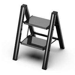 GameGem 2 Step Stool Ladder Aluminum Lightweight Folding Step Stool with Anti-Slip and Wide Pedal for Home, Kitchen Use Space Saving, 330lbs Capacity (Black),Aluminium