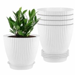 GARDENS NEED 7-Inch Round Flower Pots with Tray | Set of 5 White Plastic Planters for Indoor & Outdoor Use | Durable, Lightweight & Stylish Grand Pots for Home, Office, Balcony & Patio