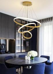 GAUVIK LED Chandelier Mordern Luxury 3 Ring Pendant Light Elegant Circle Ceiling Light Hanging Light for Living Dining Room Office Decorative Lighting (Golden)