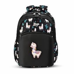 Gear Llama Backpack 17"/27L Medium Water Resistant School Bag/Casual Backpack/Daypack/Kids Bag for Boys/Girls (Black-Pink)