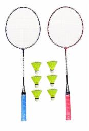 Genric Badminton Racket with Free 6 SHUTTLES, Set of 2 PC Aluminium Badminton Racquet (Red, Blue)