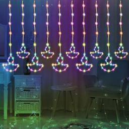 Gesto 10 Diya Curtain Light – 8 Flashing Modes Diya Lights for Home Decoration | Led Light for Diwali Decoration,Mandir,Pooja Room Decor| High Brightness Next-Gen SMD Fairy Lights (11 Feet,Multicolor)