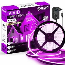 Gesto 16.4Feet Long with 12V Adaptor LED Neon Strip Rope Lights,Flat Silicone Neon Rope Light Flexible Cuttable String, IP65 Waterproof Neon LED Strips for Indoor Outdoor Decoration(Purple)