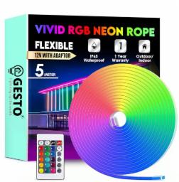 Gesto 5 Meter Neon Strip Lights – Multicolor LED Lights for Home Decoration, Bedroom,Diwali Decoration,PC,Gaming | 16 Colors Remote Operated 300 Led RGB Strip Light (Adaptor Included)