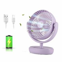 Gesto 7.8 Inch High Speed Rechargeable Table Fan for Home –USB Charging Battery Fan With Led Light | 2400mAh Battery for Upto 8 Hrs. Runtime | 3 Speed Modes Portable fan for Home,Office,Kitchen-Purple