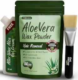 Get Nectar Happiness Herbal Aloe Vera Wax Powder For Women & Men | Instant Hair Removal | Painless & Quick, BAS-Free, pH-Balanced | No Smell | Safe for Bikini, Face & Body | No Side Effects | Unisex | Free After Wax Aloe Vera Gel 160g (100g + 60g)