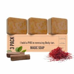 Ghar Magic Soap Tan Removal | Sandalwood & Saffron Magic Soaps For Bath (100 Gms Pack Of 3) | Paraben Free | Chandan & Kesar Bath Soap | Handmade Soaps For Glowing | Skin Brightening For Men & Women