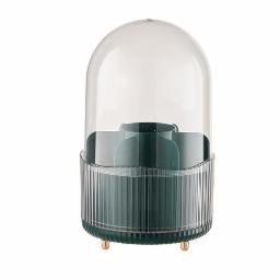 ginoya brothers Makeup Brush Holder Organizer with Lid, 360° Rotatable 7 Campatment Cosmetic Brushes Storage Round Stand for Vanity - Dustproof & Waterproof. (BLACKISH GREEN, Cotton)