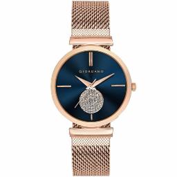 Giordano Eleganza Collection Analog Watch for Women with Crystal Studded Dial and Metallic Mesh Strap