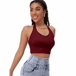 GLARE & BLAIR Ribbed Stylish Sleeveless Halter Neck Crop Tank Regular Fit Top For Women (Medium, Maroon)