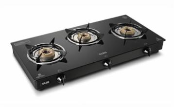 Glen 3 Burner Toughened Glass Top PNG Open Gas Stoves | Brass Burners | Black | ISI Certified | Stainless Steel Drip Trays | Anti-Skid Feet Ergonomic Knobs 2 Year Warranty (CT1030GTBB BLPN)