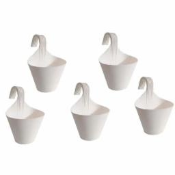 Go Hooked Plastic Hanging Planter for Plants, Vertical Gardens, Modern Living, Greenery, Compact Living Spaces, Railing Flower Pots, Pot Diameter (22 cm), Pot Height (17 cm) (Set of 5) (White)