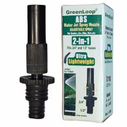 GreenLoop Water Spray Nozzle, 2-in-1 Fits all 3/4" and 1/2" hoses, Adjustable spray, ABS, Water Jet Spray Gun, for High Pressure wash, STRONG 2-in-1 Nozzle+Clamp, ONE nos