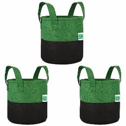 GREENSHEEP Geo Fabric Grow Bags UV Treated Gardening Cotton Pots Terrace Indoor Outdoor Home Balcony Nursery Leafy Vegetable Fruits and Flower (Black & Green Round 400 GSM Size 10x10 Pack of 3)
