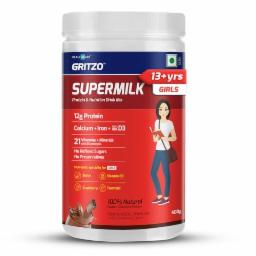 Gritzo SuperMilk Overall Growth (13+y Girls), 12g Protein Powder (Double Chocolate, 400g) | Zero Refined Sugar, 21 Vitamins & Minerals