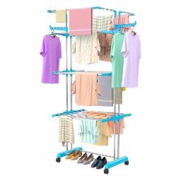 H Houseware Heavy Duty Stainless Steel 4 Tier Cloth Drying Stand with Wheels | Large Clothes Dryer & Laundry Rack | 43.2D x 78.7W x 165H cm | 5kg | Rustproof & Portable(Jumbo Stand)