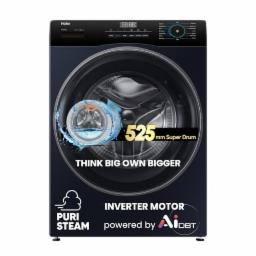 Haier 7 Kg 5 Star Powered by AI-DBT with PuriSteam, 525mm Super Drum Fully Automatic Front Load Washing Machine (HW70-IM12929BK, Inverter with In-Built Heater, Black)
