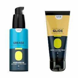 Halo Care Pre Shave Superstars - Grease Nourishing Pre Shave Oil 60mL & Natural Neem Tea Tree Shaving Cream for Men - Coconut, Argan, Jojoba, Aloe - Smooth Razor Glide, Mocha Coffee Fragrance, Sensitive Skin