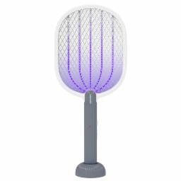 Halohop Mosquito Bat with UV Light Lamp, 2 Modes Mosquito Racket USB Rechargeable - Bug Zapper Electric Fly Swatter with Base - Mosquito Swatter Racket with Long Lasting Lithium-ion Battery (Grey)
