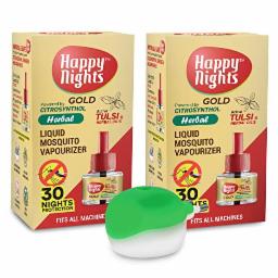 Happy Night 45 ML Mosquito Refill with Machine/ Active Tulsi Mosquito Refill/ Mosque Repellent/ Liquid Vaporizer for Mosquito/ Natural Insect Repellent/ Room freshner/Safe for Kids & Baby/ 1 Mosquito Machine + 2 Refill (45ml each)