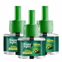 Happy Nights Neem Mosquito Refill | Herbal Neem Repellent | Repellent | Insect Vaporizer | Prevent from Dengue | Completely Herbal Safe for Children | 45 ml (Pack of 3 Refill plus 1 machine)